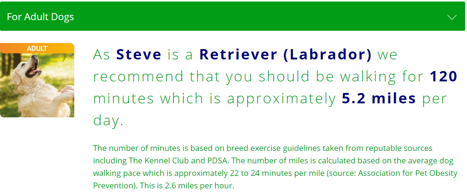How will you know how much exercise your dog needs? Try this online calculator from www.lintbells.com.